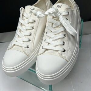 Stuart Weitzman Sz 38 White Canvas Tennis Shoes Sneakers