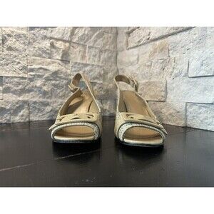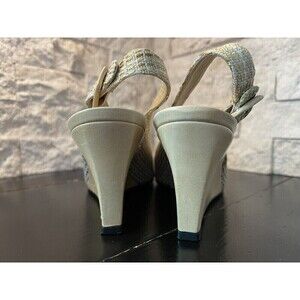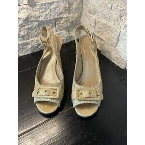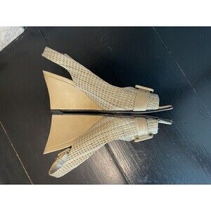 Stuart Weitzman Sz 6 N Women’s Woven Beige Peep Toe Wedge Heels Shoes w/ Buckle