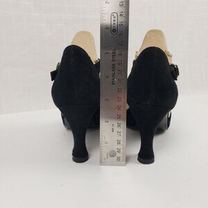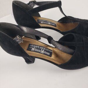 Stuart Weitzman Sz 7 Black TStrap Heels for Neiman Marcus Slits 3" Suede Shoes