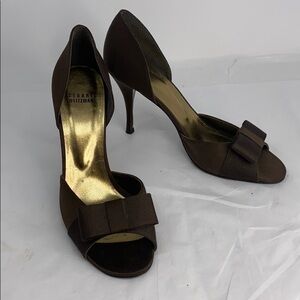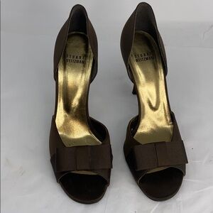 Stuart Weitzman Sz 8.5M D'Orsay Brown Satin Heels