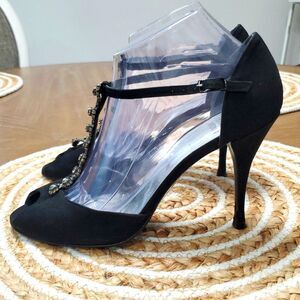 Stuart Weitzman T Strap Womans Crystal Embellished black heels, SIZE 8