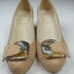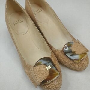 Stuart Weitzman Tan Lizette Bucalima Tortoise Buckle Wedge Shoes 6 M. Shipped with USPS Priority Mail.248pem