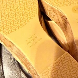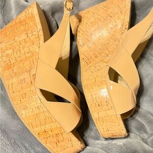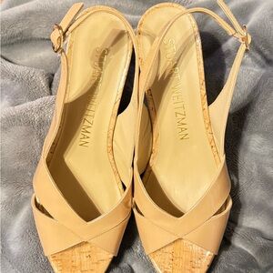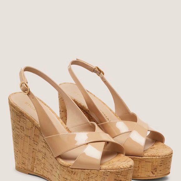 Stuart Weitzman Tan Patent Wedge Sandals