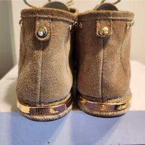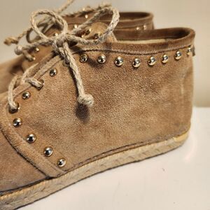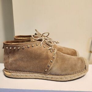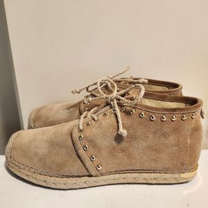 Stuart Weitzman Tan Suede Espadrille Sole Booties w/Gold Studs sz.8.5 MSRP $445