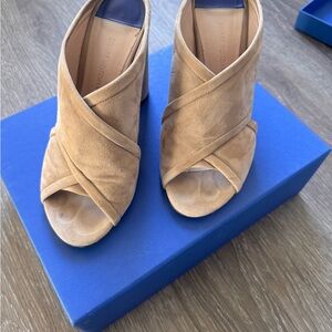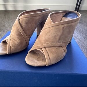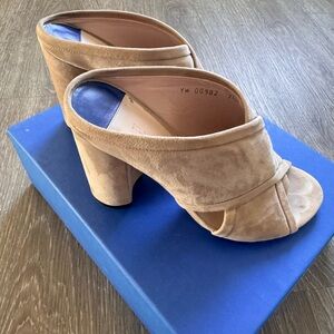 Stuart Weitzman Tan Suede Mules (Sam in brownstone suede)