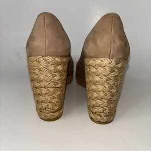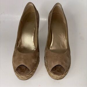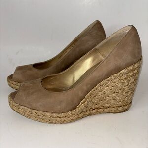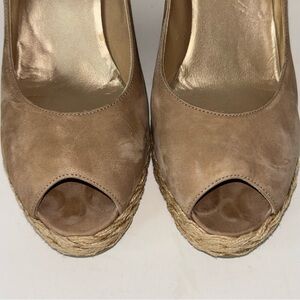 Stuart Weitzman Tan Suede Wedge Platform Peep Toe Espadrille Pumps Size 9.5 M