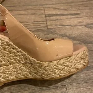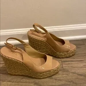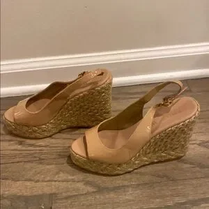 Elevate your style with these Stuart Weitzman tan wedge sandals. Perfect for any occasion, these shoes offer both comfort and elegance. Size 5B.
