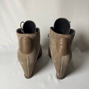 Stuart Weitzman Taupe Suede Hidden-Wedge Lace-Up Boot
