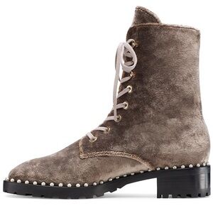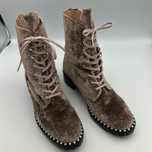 Stuart Weitzman Taupe Velvet Allie Pearl Combat Bootie in Desert Rose Sz9