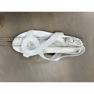 Stuart Weitzman Teodora Flat Sandals 7 White Buckle Ankle Strap Open Toe