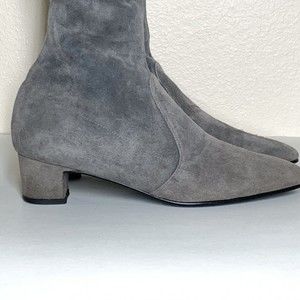Stuart Weitzman milla gray stretch suede boots. Pull-on, under the knee length.