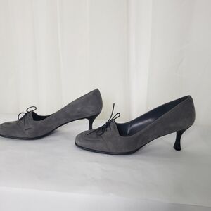 Stuart Weitzman Tidings charcoal gray suede leather heel pump lace tie size 9