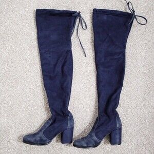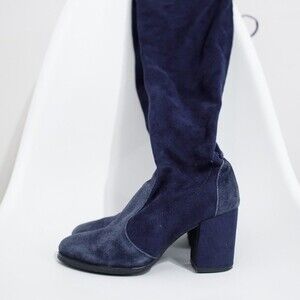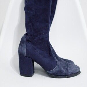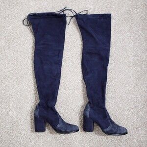 Stuart Weitzman Tieland Over the Knee Boot Blue Suede Size 6 / 36