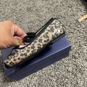 Stuart Weitzman Toddler Girls Shoes Leopard Print Flats with Black Trim Sz 8