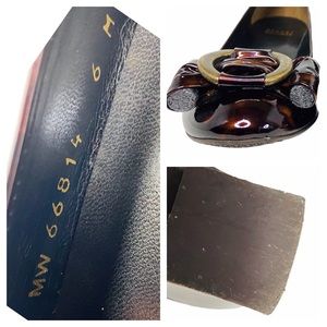 Cognac & Dark Brown Patent Leather Shoes with Bow Tie & Antique Brass tone Buckle.