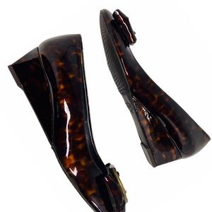Stuart Weitzman Tortoise Patent Women’s Shoes Caring Brown Demi Wedge Size 6