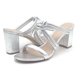 Stuart Weitzman Twist 75 Knot Block Heel Sandal Metallic Silver Leather Size 7.5