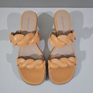 Stuart Weitzman Twist Espadrille Wedge Sandal Mango Leather Jute Size 10