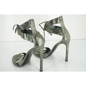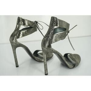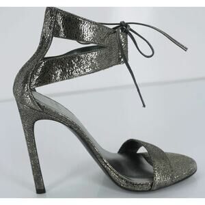 Stuart Weitzman Tynela Pewter Leather Ankle Strap High Heel Sandals