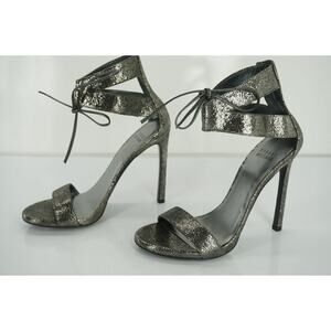 STUART WEITZMAN TYNELA PEWTER LEATHER ANKLE STRAP HIGH HEEL SANDALS SIZE 6 NEW