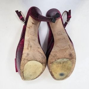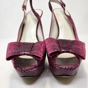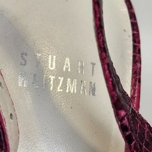 Stuart Weitzman Vevey Pink Leather Snake Print Stiletto Heels 10 M Slingback Bow