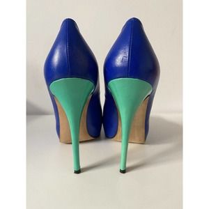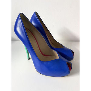 Stuart Weitzman Victoria Pump Ultramar Blue Colorblock Peep Toe Leather …