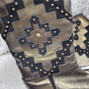 Stuart Weitzman Vintage Aztec Studded Leather Pull-on Boots size 6.5