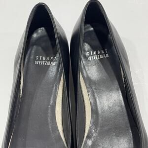 Stuart Weitzman Vintage Black Ballet Flats Cutout Flower Size 9.5 - great preloved condition with normal wear (minor creases, scuffs, sole).