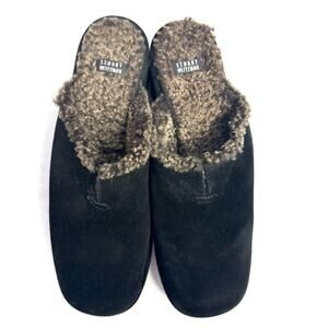 Good used condition! Black genuine leather suede Atem clogs with brown and tan Sherpa lining. Back platform measures 2 inches. Front platform measures 1 inch. One imperfection shown in last photo.
