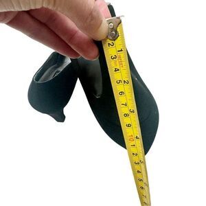 Condition is preowned. No flaws to note. Strap across the toe with bead closure. Pointed, almond toe. 3.5” heel height.