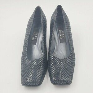 Stuart Weitzman Vintage Black Snake Print Textured Square Toe Pumps Size 7B