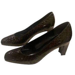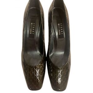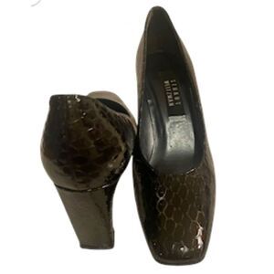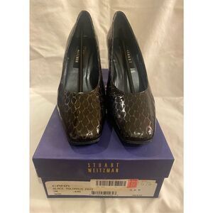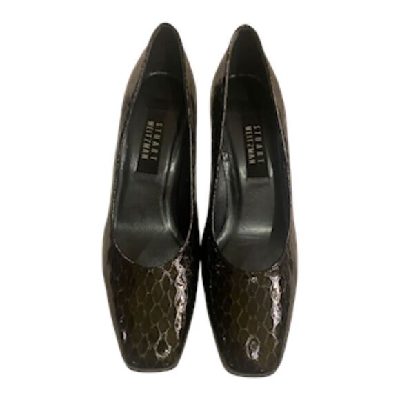 Stuart Weitzman Vintage Black Molorrus Patent Pumps Sz. 9 Snake Ptrn Box