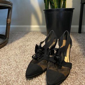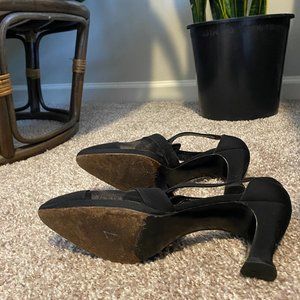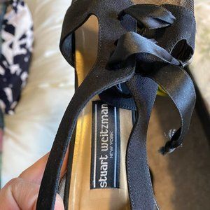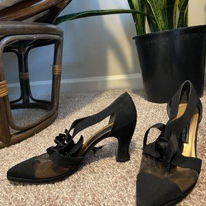 Womens' Black Stuart Weitzman pumps with pointed toe design and mesh detail. Vintage, so soles are well worn (refer to photo), but in otherwise great condition. Size 9, but fits more like 8.5