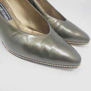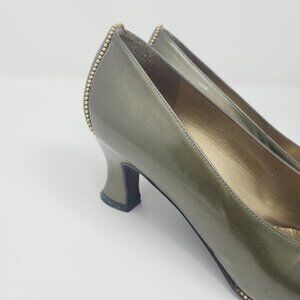 Stuart Weitzman | Vintage Olive Green Leather Heels with Gold Trim (Size 7)