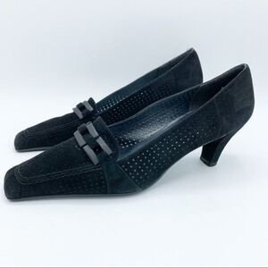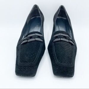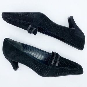 Stuart Weitzman Vintage Perforated Black Suede Heeled Loafers Sz 7 Work Office C