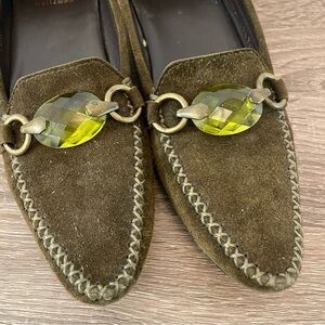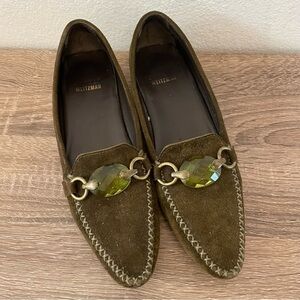 Stuart Weitzman Vintage Pointed Toe Jeweled Green Loafers, Size 6.5SS