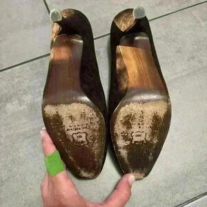 Stuart Weitzman Vintage Suede Brown Leopard Heels Size 8.5 Tassels Y2K 90s