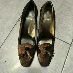 Stuart Weitzman Vintage Suede Brown Leopard Heels Size 8.5 Tassels