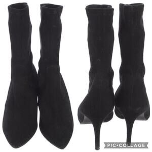 Stuart Weitzman WREN 75 Black Suede Stretch Sock Booties Size 11.5 EUC