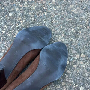 Stuart Weitzman Walnut Brown Suede Stacked Heel Pumps Bow Buckle Size 9.5