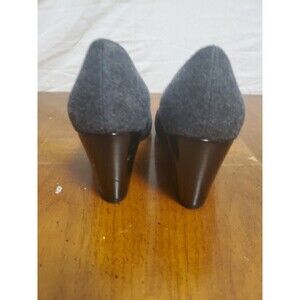 Stuart Weitzman Wedge Gray Wool Heels Shoes 7.5 M 3" Pump Round Toe
