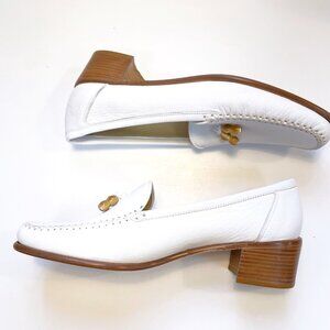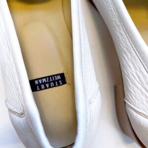 Stuart Weitzman White Beaded Leather Loafer, Size 12 AA