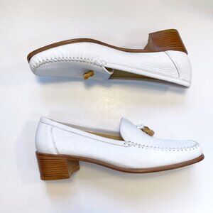 Gorgeous white slip on leather loafers with beaded detail. Narrow fit and designed for a high arch.