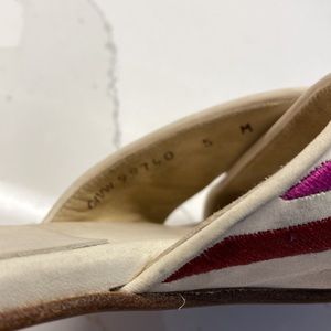 Stuart Weitzman Off White Cream Leather Embroidered Mod Spike Slides