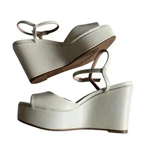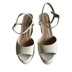 Stuart Weitzman White leather Platform Wedge Sandals Shoes 8