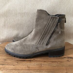 Stuart Weitzman Women 7M Suede Taupe Ankle Booties Chelsea Boots Side Zipper