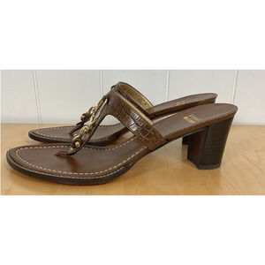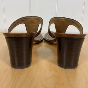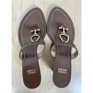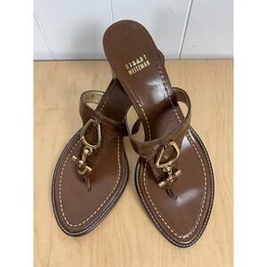 Stuart Weitzman Women Brown Leather Strap Sandal Heel with Gold Detailing SZ 8.5