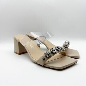 Stuart Weitzman Women Crystal Fleur 60 Slide Heel 9.5 Clear Strap Rhinestone NIB