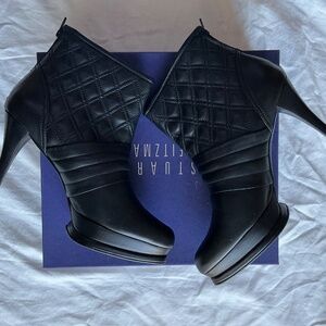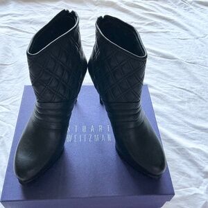 Stuart Weitzman Women Leather Quilted Ankle Boots (size: 8)