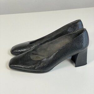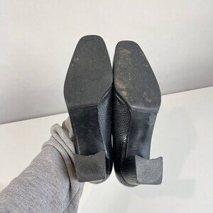 Stuart Weitzman Women Leather Snakeskin Pumps Black 6.5M Block Heels Square Toe
